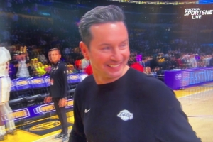 体育资讯4月13日讯 NBA常规赛,湖人半场62-45领先爵士。主帅雷迪克在中场时接受了采访。