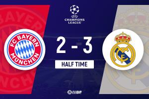 半场-拜仁暂2-3总分4-4皇马 居莱尔双响诺伊尔送礼凯恩姆巴佩破门