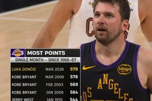 两个赛季不到!东契奇单月579分超越06科比成湖人队史单月得分王