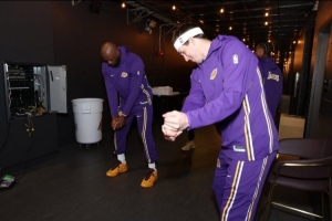 赛后,湖人后卫里夫斯更新Instagram Story,晒出他和队友詹姆斯赛前在球员通道内一起做出高尔夫挥杆动作的照片,并配文道:“⛳️”