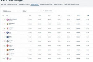 近5个赛季欧足联积分系数:拜仁反超皇马升至第一