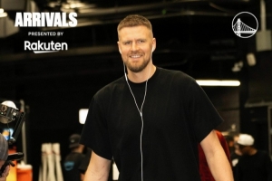 体育资讯4月18日讯 勇士今天将和太阳进行附加赛生死战,勇士官方晒波津和霍福德入场照,两位内线球员笑容满面自信满满。